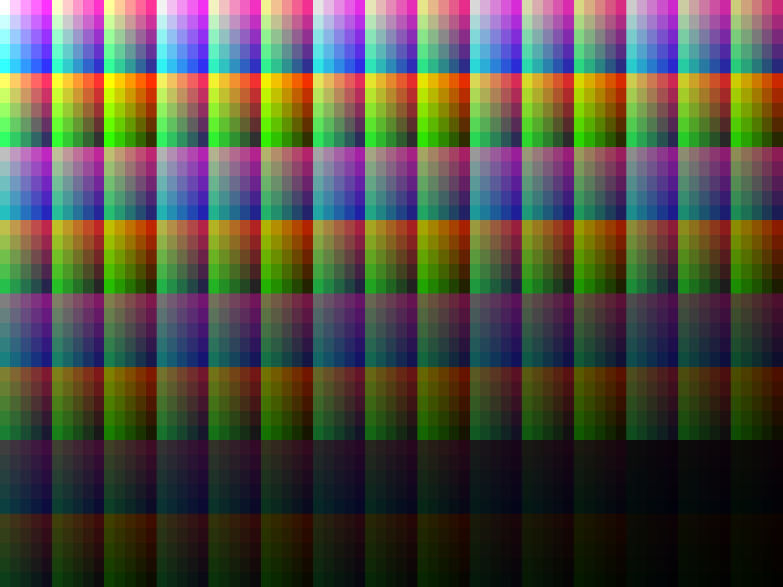 In jedem Bereich werden 25 Farben in 5 Zeilen zu 5 Spalten gezeigt.